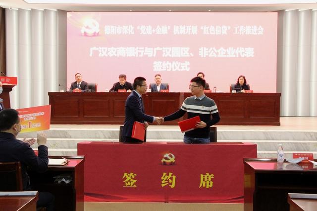 会议通报了德阳市四、五星级两新党组织评定结果并授牌,推介了“红色信贷”产品,进行了现场授信和签约。广汉农商行党委向德阳高新区党工委、广汉工业集中发展区党工委授信110亿元,广汉农商行党委分别向四川新升投资集团有限公司党总支、四川璧虹广播电视新技术有限公司党支部授信5亿元和1亿元。